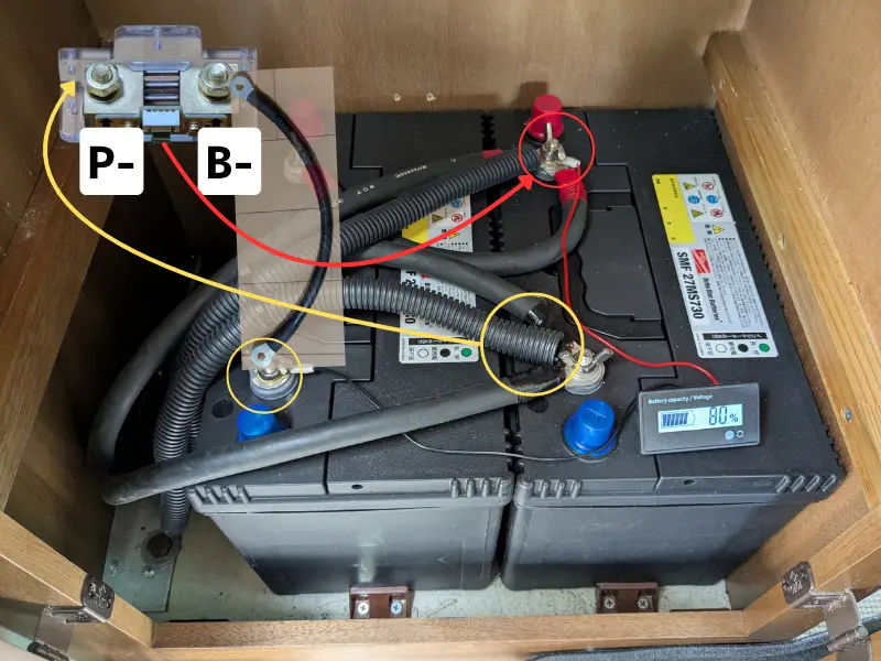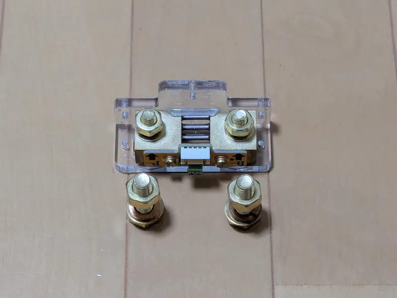 サブバッテリーの端子がM8なのに対して、電流を検知する採集モジュールの端子がM10のため、端子を打ち替えるか別の方法で取り付ける必要があります。