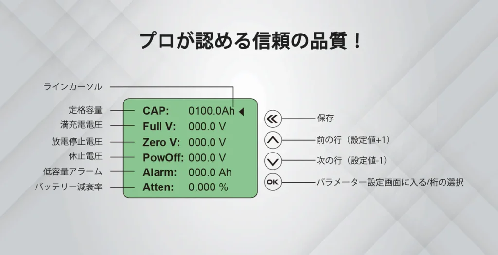 充電・放電の容量を監視して、残量表示だけでなく使用可能時間や満充電までの時間を表示する高機能・高精度のバッテリーモニターです。他社製と比較してリーズナブルな価格なのもオススメのポイント。
